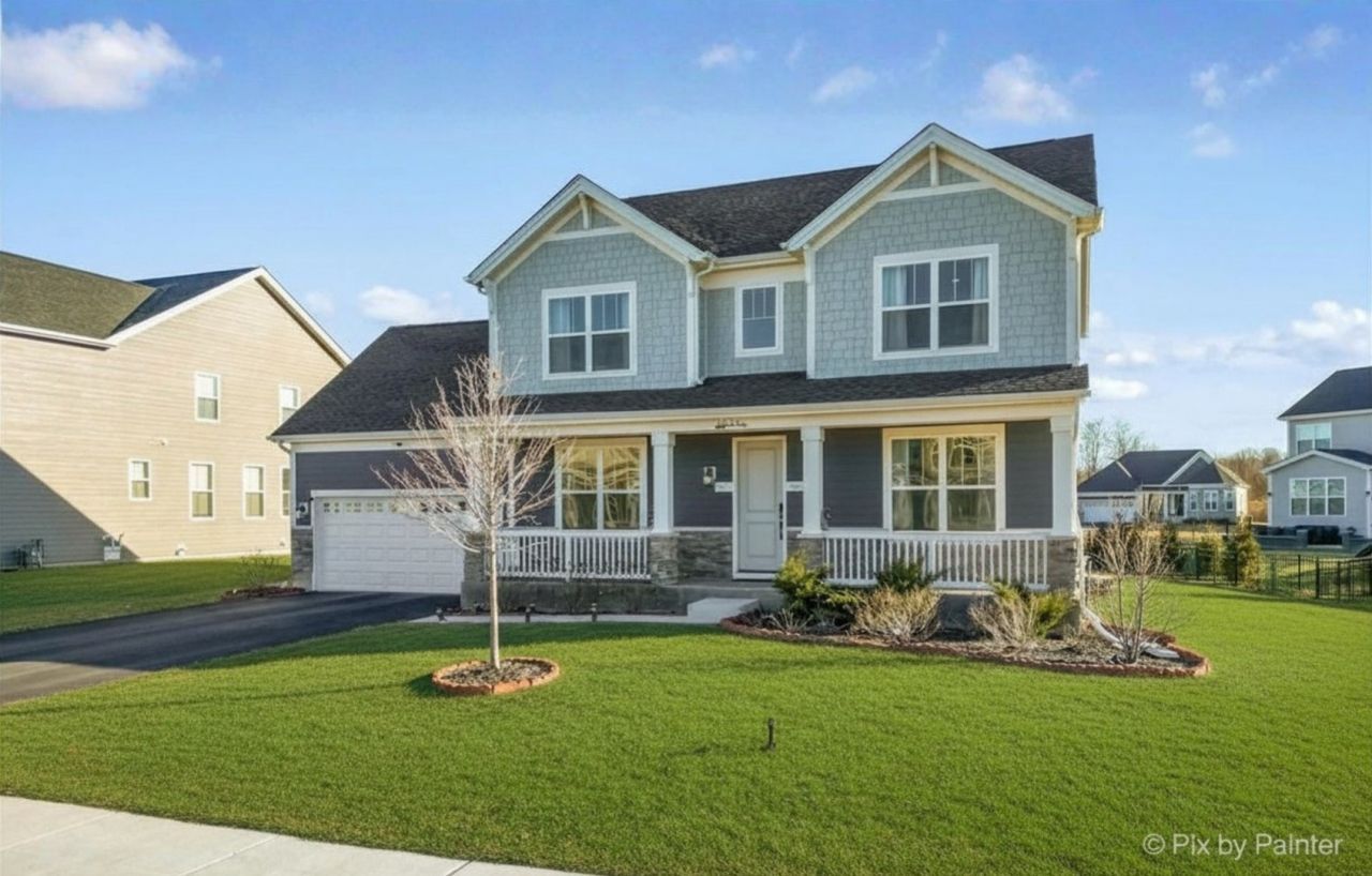 Welcome home to The Island pocket of Bowes Creek Country Club, Elgin's gorgeous premier golf course community! This beautiful Newhart Craftsman model still feels like new, having just been built in 2023, and offers 4 bedrooms and 2.1 bathrooms in almost 2,400 sqft of finished living space! The rare, full covered front porch adds an inviting charm to the home, and the larger 0.29 acre lot with brick patio gives your family plenty of space for outdoor enjoyment. The first floor offers a huge office/den with glass panel door, formal dining room, and an open living space that includes the beautiful kitchen with walk-in pantry, breakfast area and large family room! Upstairs, you'll find the 4 bedrooms and 2 full bathrooms, giving you plenty of space for your family and guests! The primary suite features a large walk-in closet and en-suite with double vanity sinks, quartz countertops, separate water closet and oversized shower! Plenty of additional room awaits in the 1,250 sqft basement with plumbing rough-in for future bathroom and living space. Bowes Creek Country Club not only offers the award-winning golf course, but also scenic walking trails, parks with playgrounds, and an on-site restaurant. Conveniently located near all of the shopping, dining, and entertainment that the Randall Rd corridor offers. Don't miss your chance to live in a like-new charmer in this Toll Brothers luxury home community!