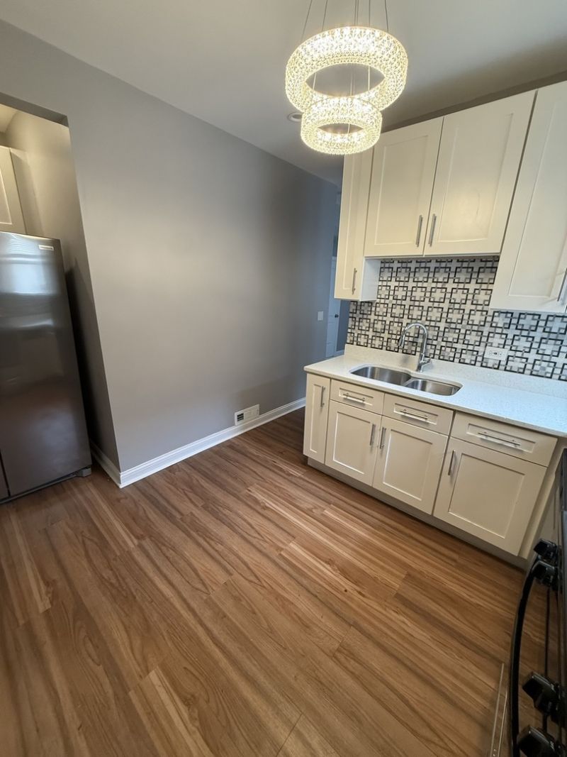 Step into this classic Chicago style bungalow and prepare to be impressed. The open concept living and dining room welcomes you with luxury light fixtures, dimmable LED recessed lighting, and original hardwood floors refinished in a rich dark walnut stain-a warm, elegant first impression that instantly feels like home. The beautifully updated kitchen features QUARTZ countertops, mosaic tile backsplash, brushed nickel finishes, stainless steel appliances, and crisp modern cabinetry. Just off the kitchen, the enclosed back porch provides valuable extra storage or flex space. The finished attic offers even more versatility with a spacious lounge area plus a bonus room-perfect for a guest space, playroom, or creative retreat. The fully finished basement is a true standout, showcasing ceramic tile flooring, a meticulously designed bathroom with a walk-in shower, dual shower panel system, and a custom glass door. Both bathrooms feature LED light vanity mirrors for a sleek, contemporary touch. The lower level also includes a large laundry area, a cozy nook ideal for a small office, and generous storage options. Major updates bring peace of mind, including newer electrical, newer plumbing, newer HVAC, newer furnace and water tank, newer gutters, and a newer wood & iron rod fence surrounding the yard. This home blends timeless Chicago charm with modern luxury and thoughtful functionality. Don't delay-